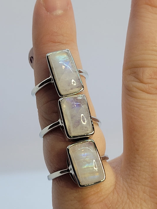 .925 Silver, Adjustable, Moonstone Rings - Rectangle cut