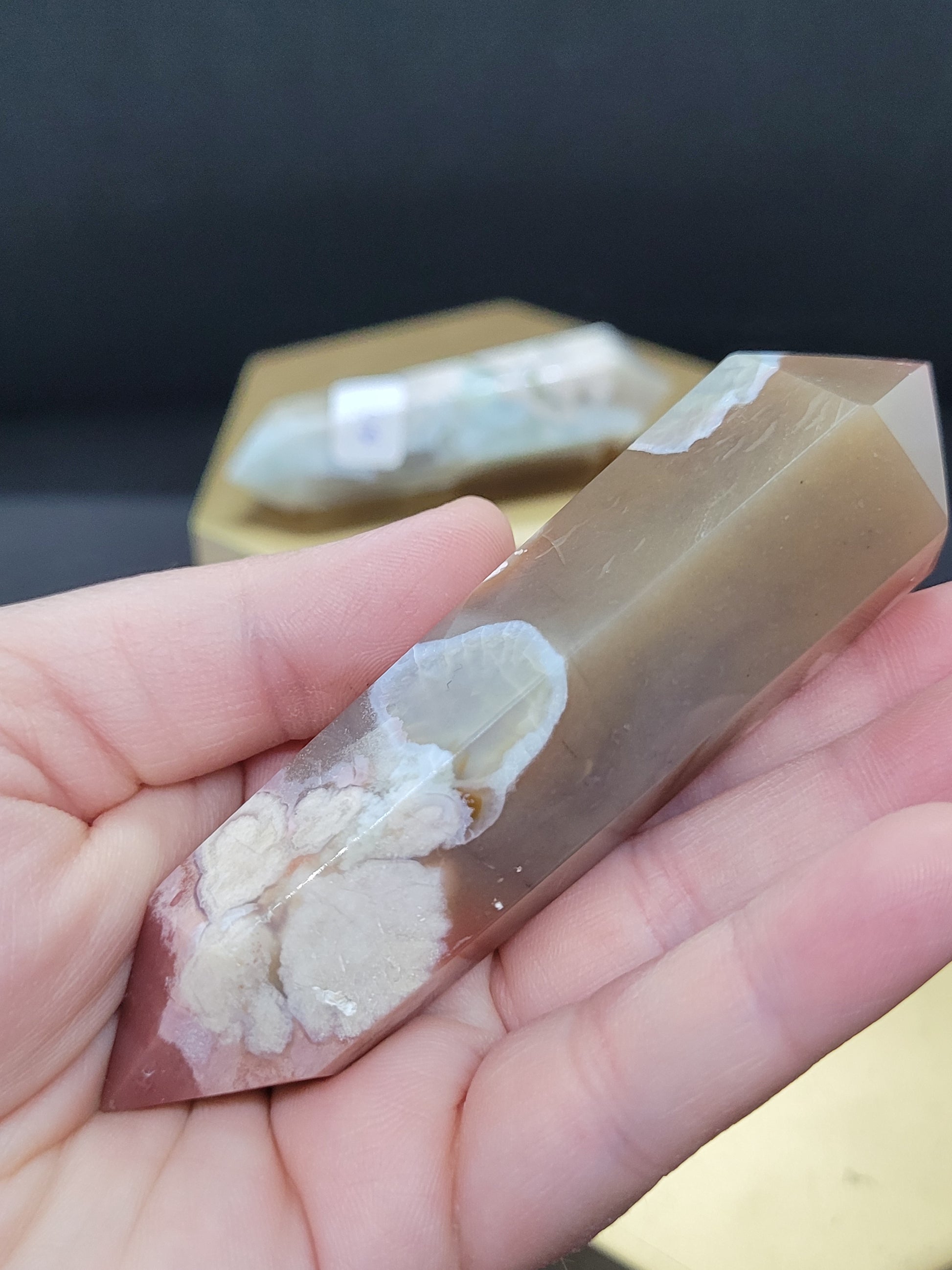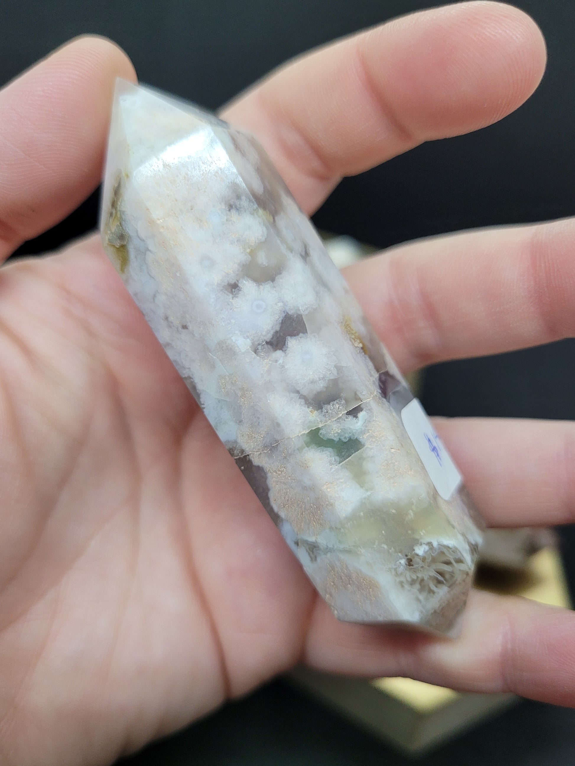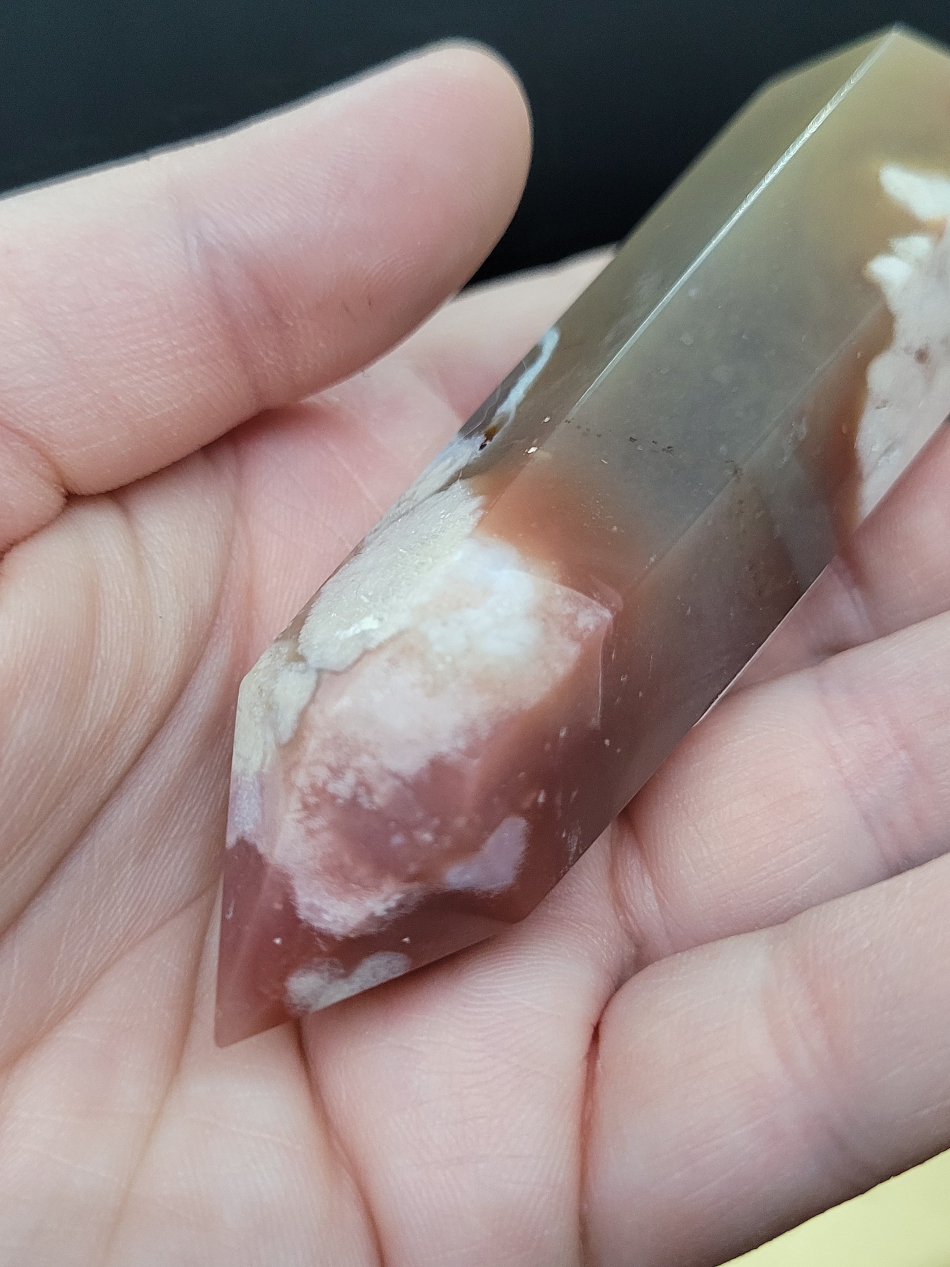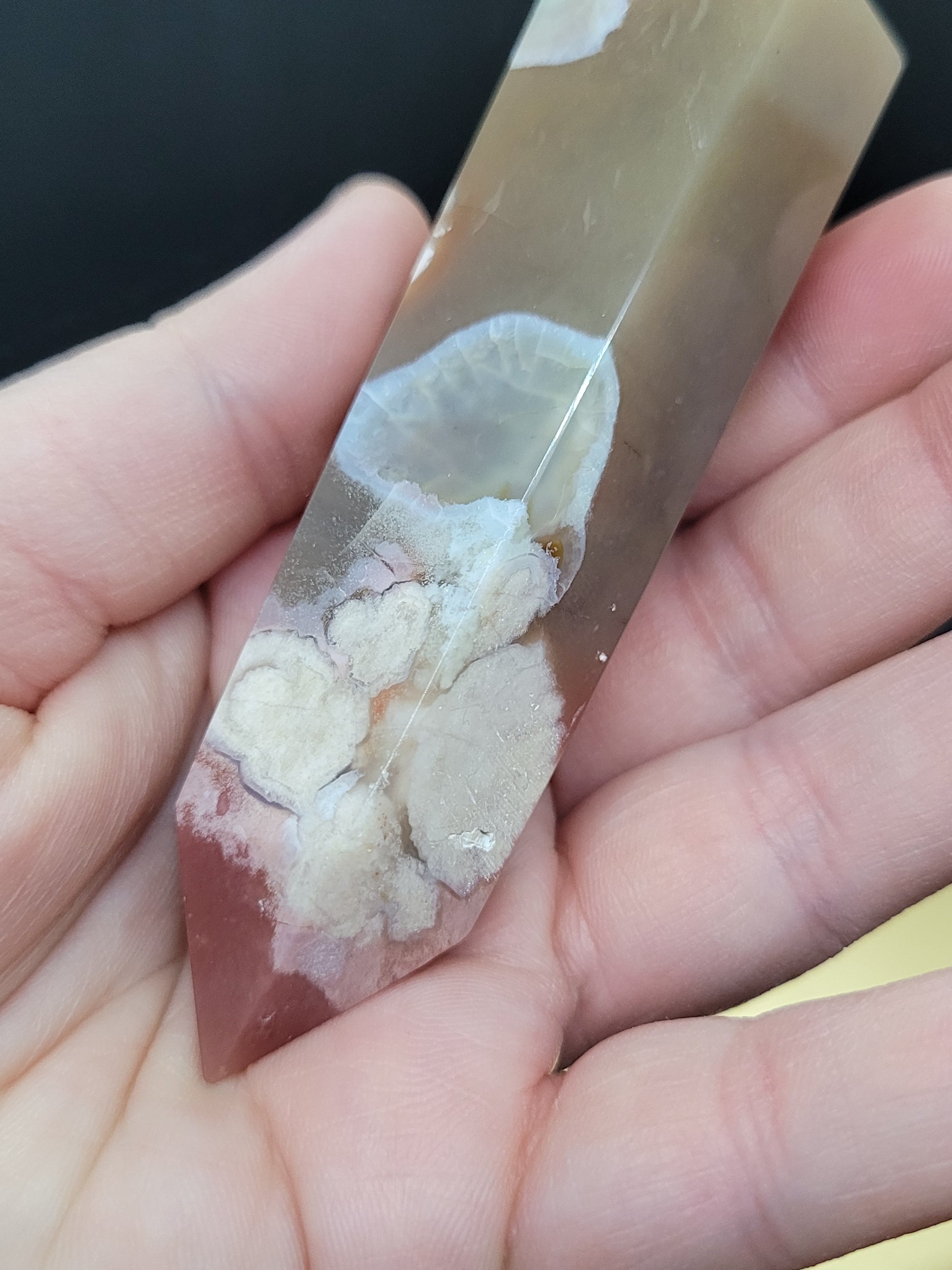 Discover the beauty of Cherry and Blue Flower Agate DTs, featuring stunning floral patterns and vibrant hues. Some exhibit more cherry tones, while others showcase a touch of green. Our varying sizes range from 1.8oz to 3.3oz, allowing you to find the perfect crystal for your needs. Unlock the full potential of Flower Agate in your spiritual journey, harnessing its ability to foster self-growth and motivation. This powerful crystal can help manifest your dreams and ignite your inner drive to pursue them. As you hold the stone, you'll notice small "seeds," representing the path to blossom your aspirations. Flower Agate can also provide emotional balance, guiding you towards a confident future while dispelling negative energy. Find strength and clarity as you reflect on past mistakes and accept them with clarity and awareness. With a gentle yet grounding energy, Flower Agate can also stimulate creativity and inspire you to reach new heights. Stay connected to the present moment with this uplifting and centering