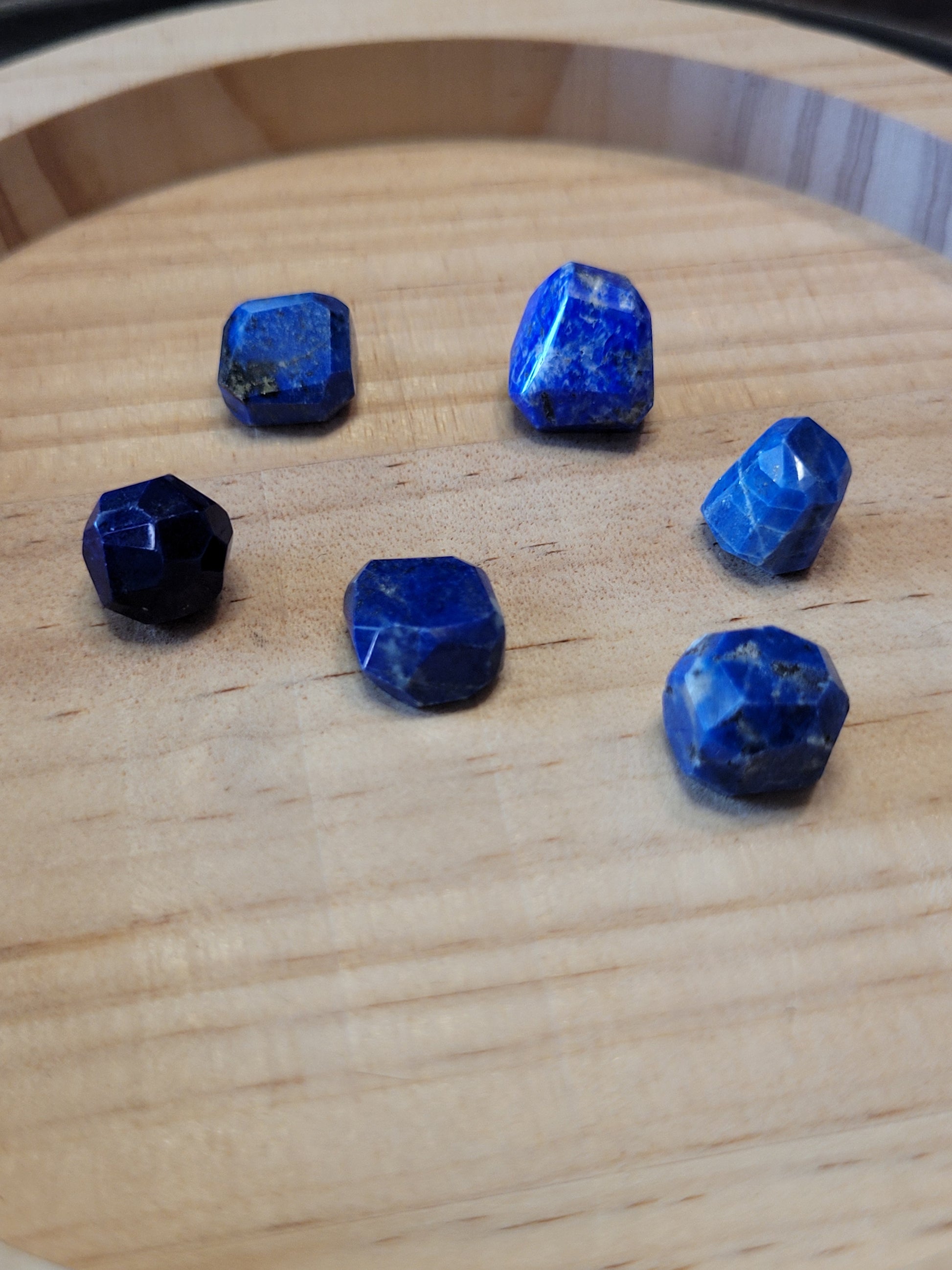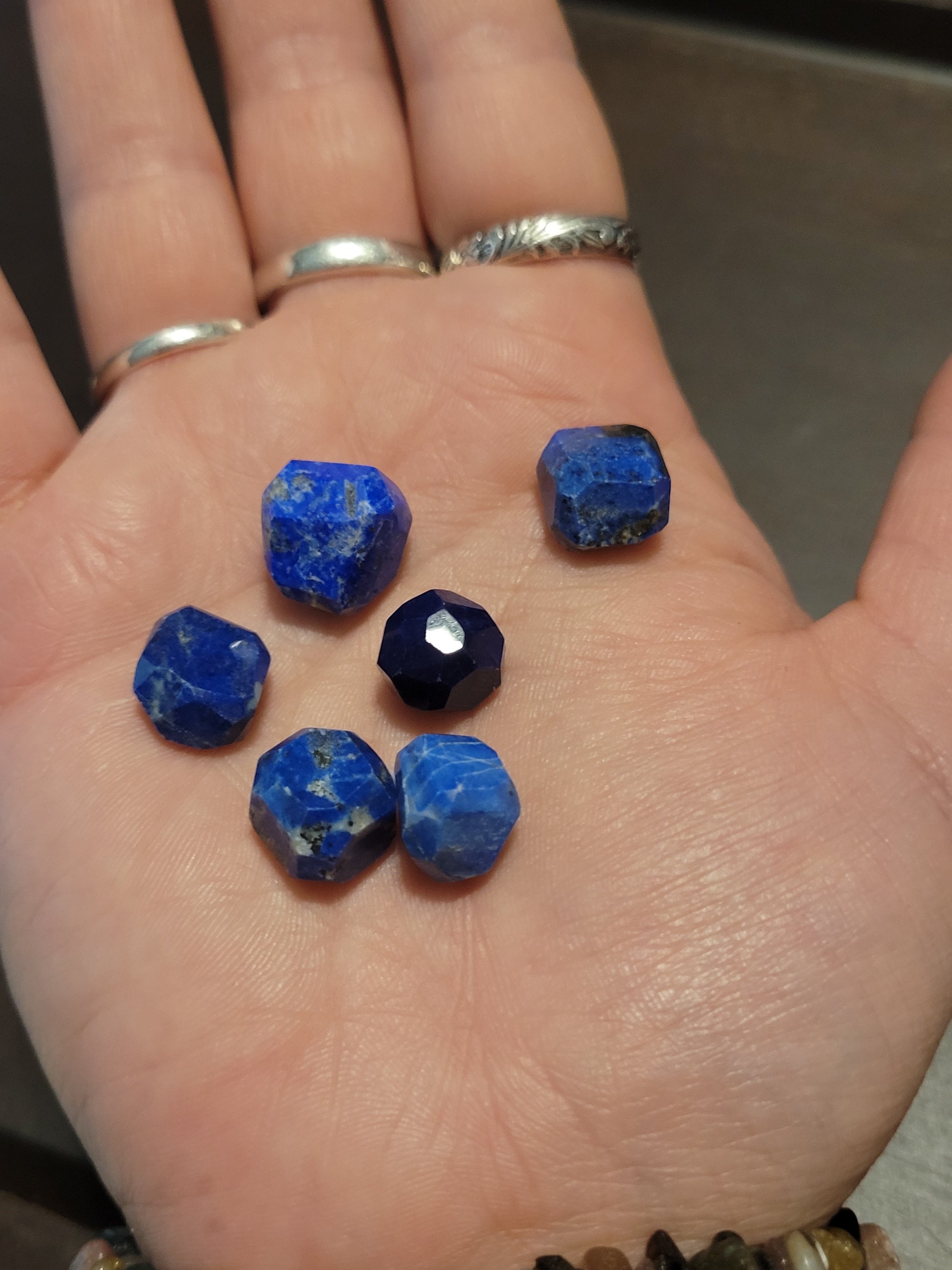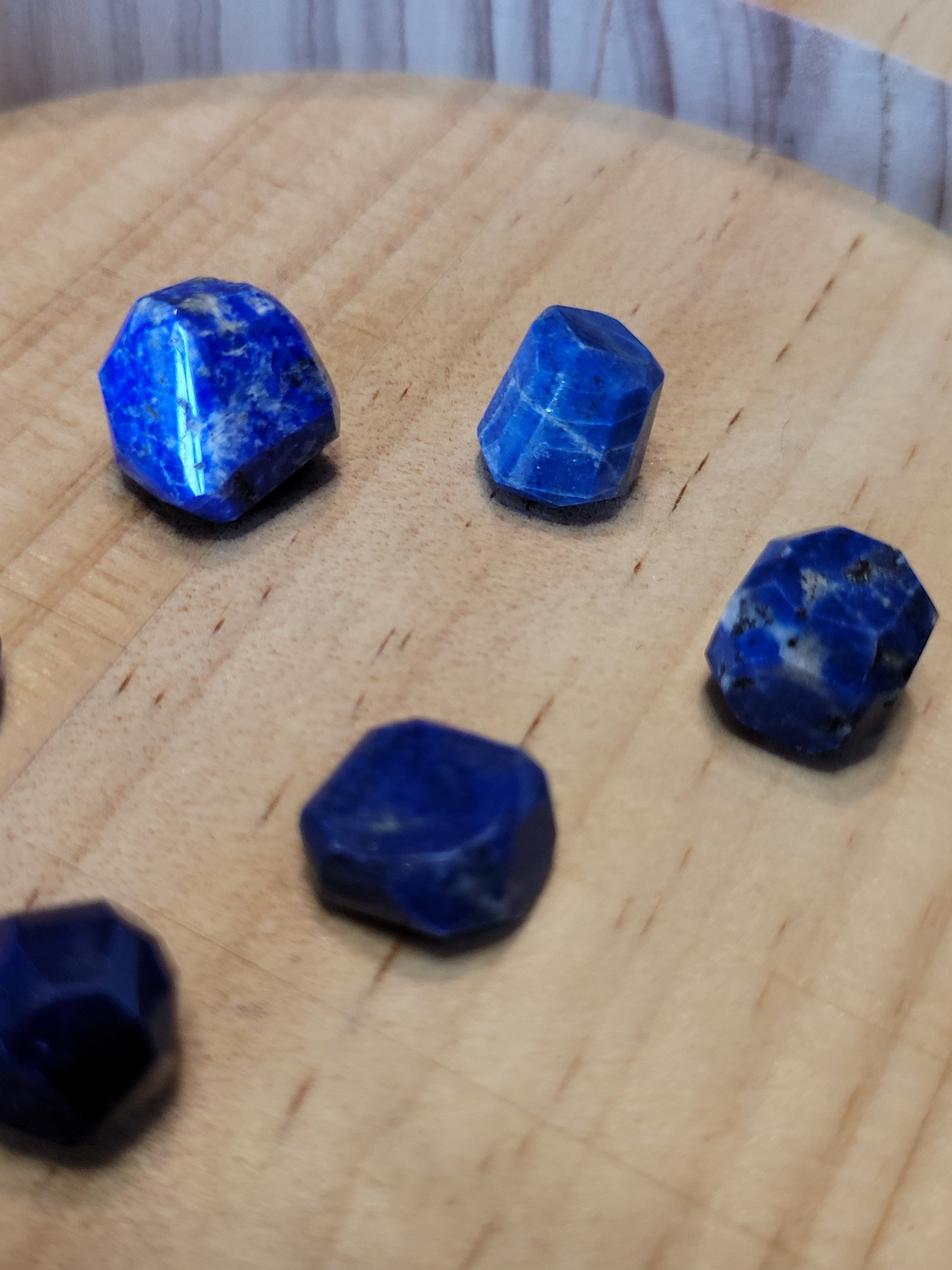 These extra small faceted lapis lazuli gems are expertly hand-polished (By a friend) to showcase their rich, deep blue hue. Known for its association with royalty, strength, and wisdom, lapis lazuli has historically been valued for its protective qualities and ability to enhance vision. Metaphysically, it supports the brow and third eye chakras, fostering intuition, spiritual insight, and emotional clarity. These high-grade stones are believed to shield against negative energies, encouraging tranquility and emotional honesty.