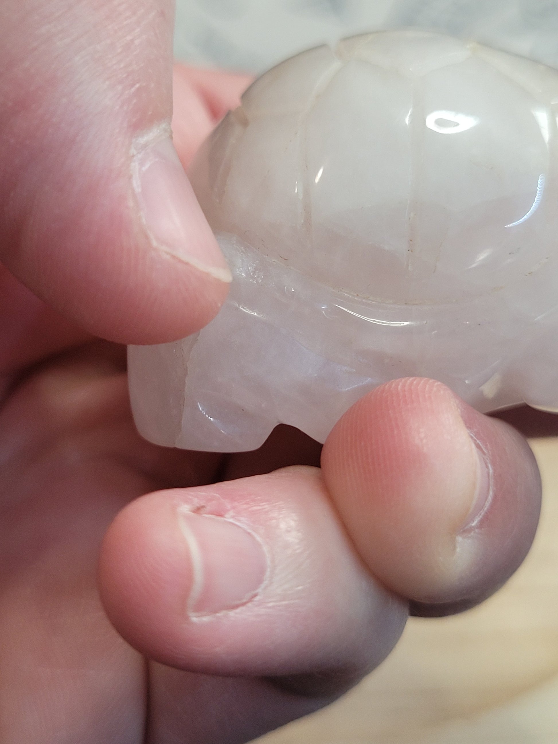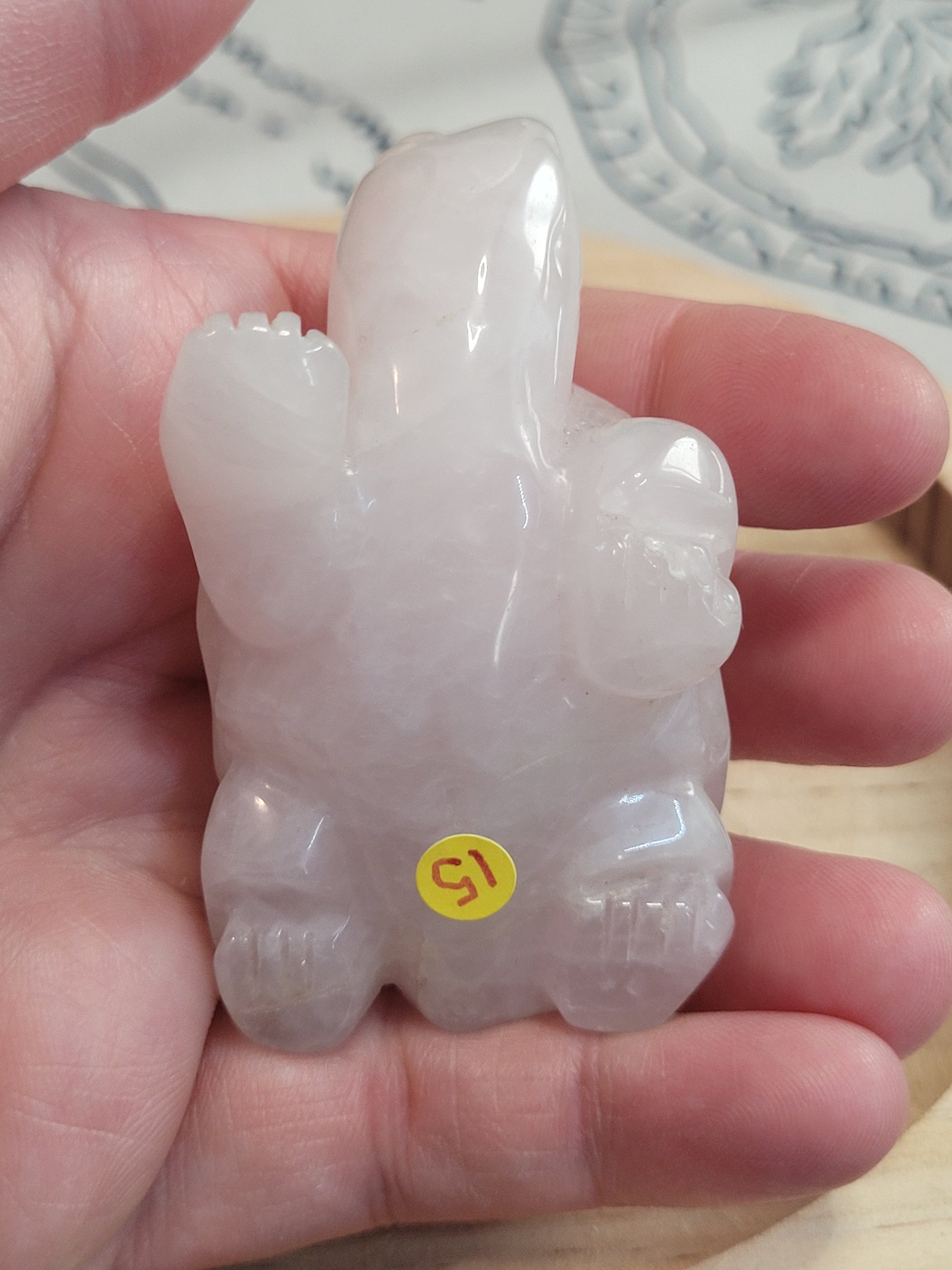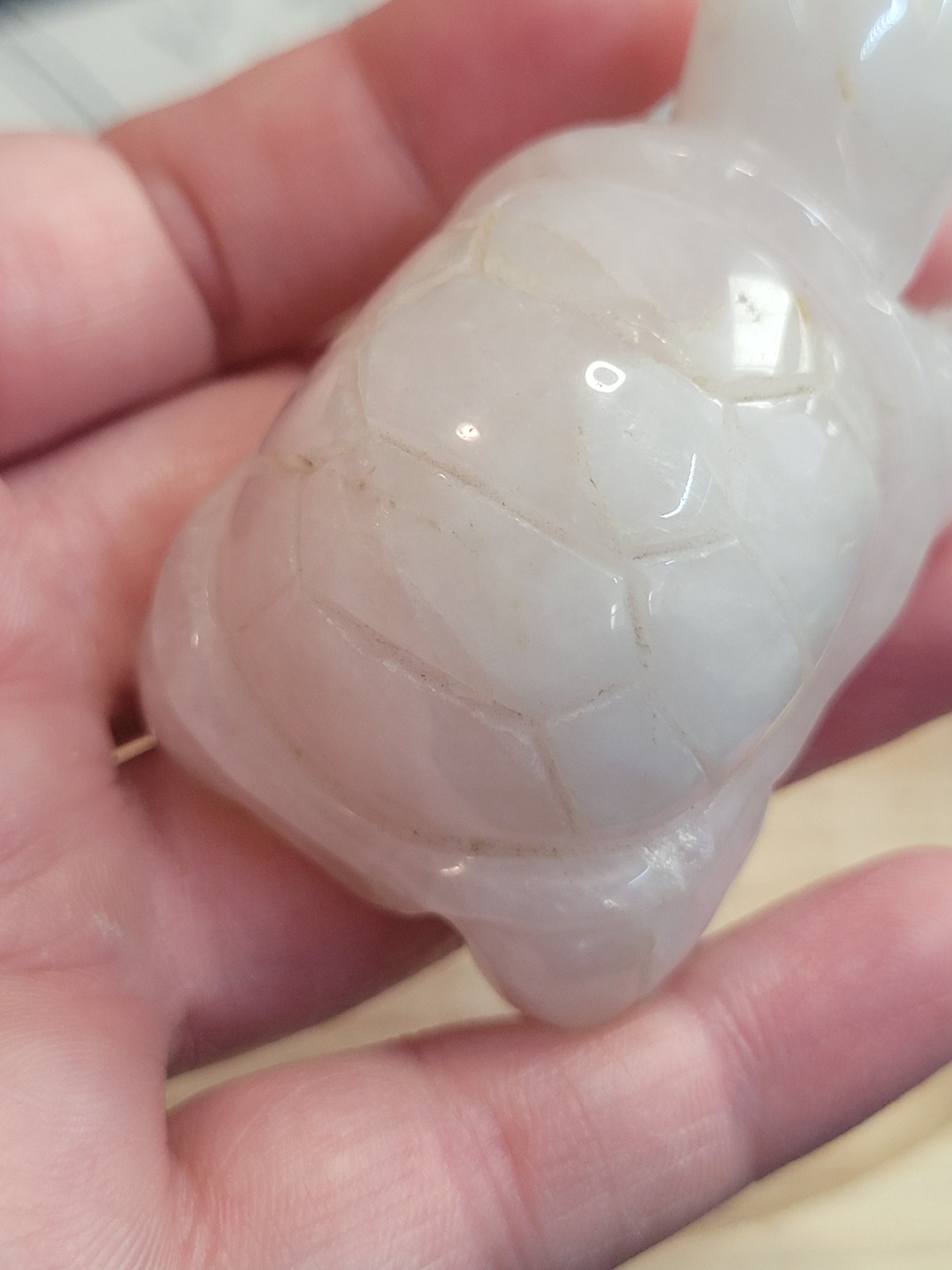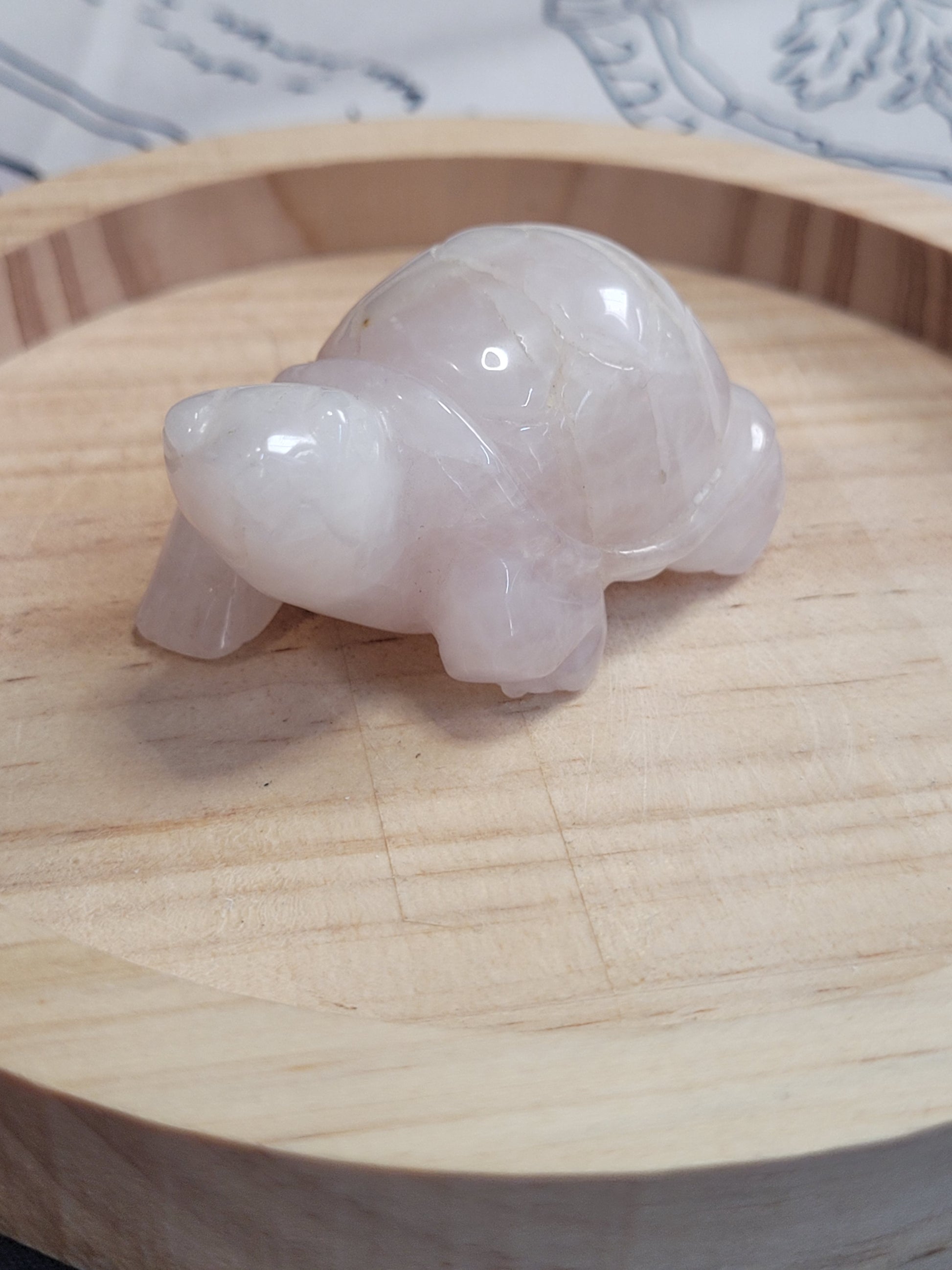 This exquisite rose quartz tortoise carving merges two powerful symbolic traditions. Rose quartz, revered as the stone of unconditional love, is believed to nurture emotional healing, deepen self-compassion, and cultivate harmonious relationships while promoting tranquility and inner peace. The tortoise form amplifies these qualities, representing longevity, stability, and grounded wisdom. In Feng Shui and Vastu Shastra practices, crystal tortoises are positioned to channel protective energy and prosperity into living spaces, with their directional placement enhancing their influence. A meaningful piece for those seeking both aesthetic beauty and energetic support. Has small imperfection.