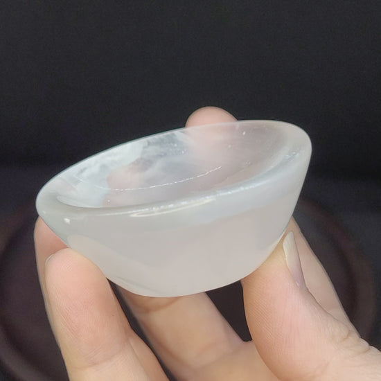 This small Satin Spar dish has a high polish and is great as a sphere stand. It is more than just a beautiful piece, as it is believed to have protective properties against negative energy and can enhance mental clarity, emotional balance, and communication skills. Although often mistaken for selenite, satin spar has its own unique internal structure and way of refracting light. Many believe it can also aid in connecting to the spirit realm.