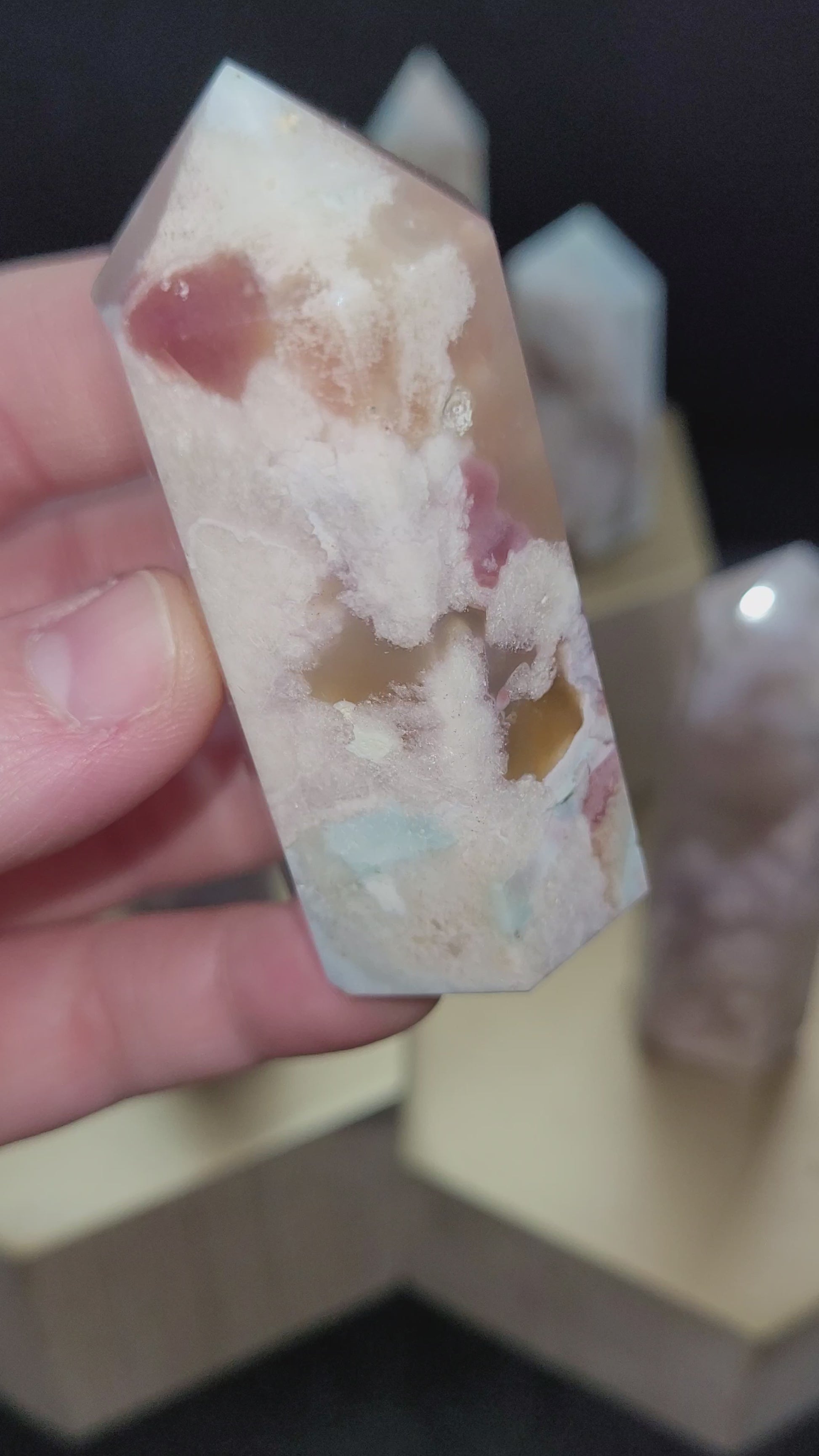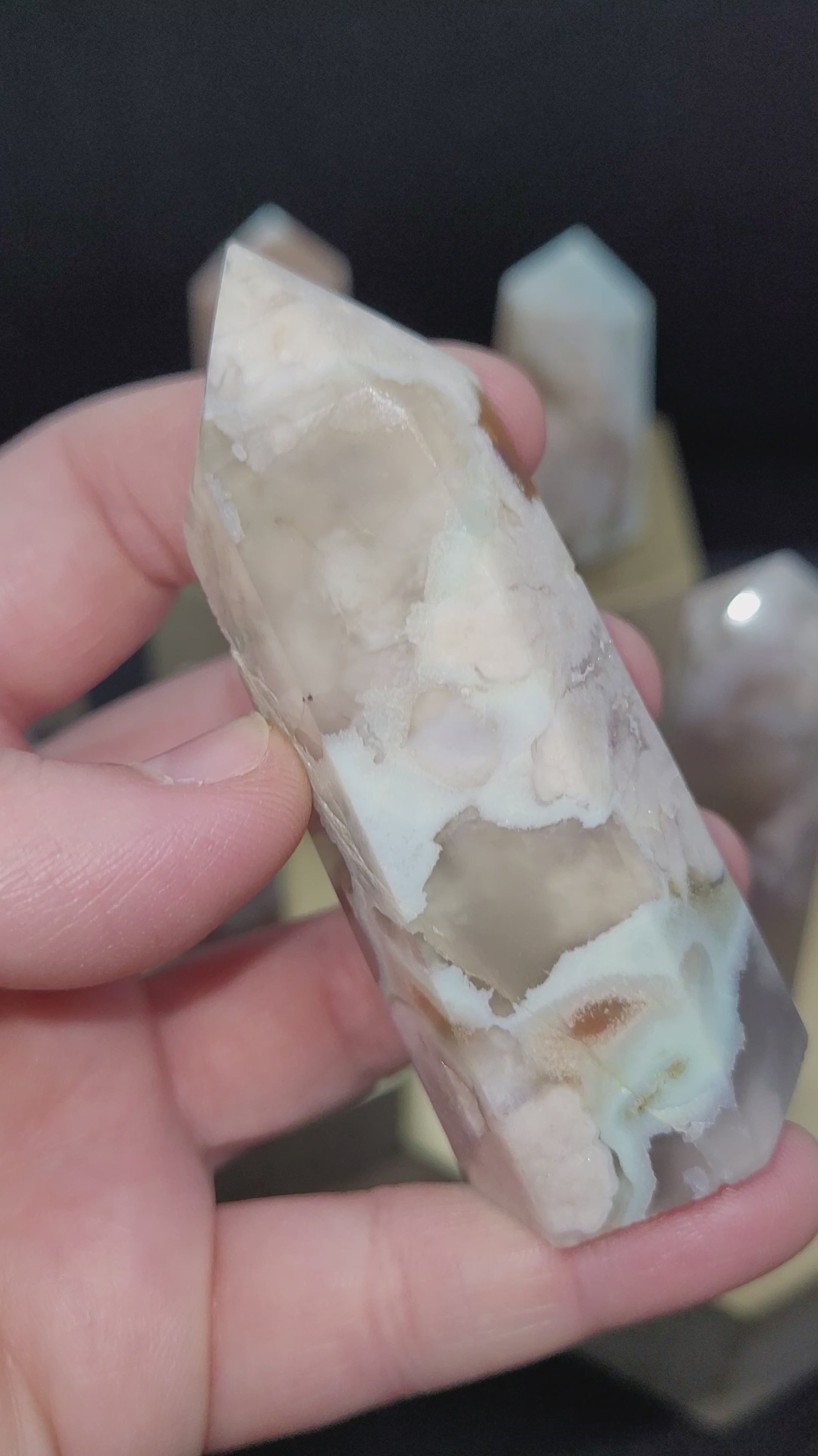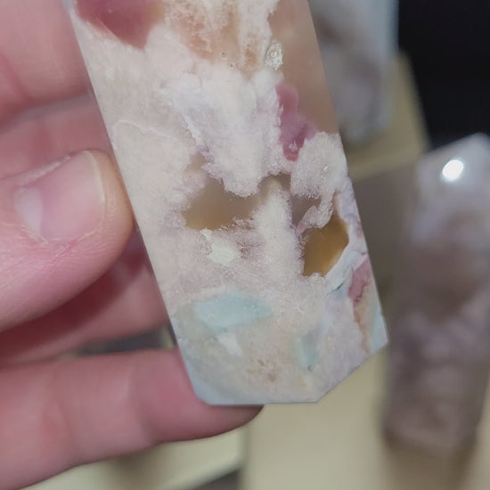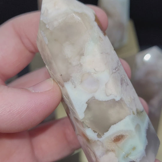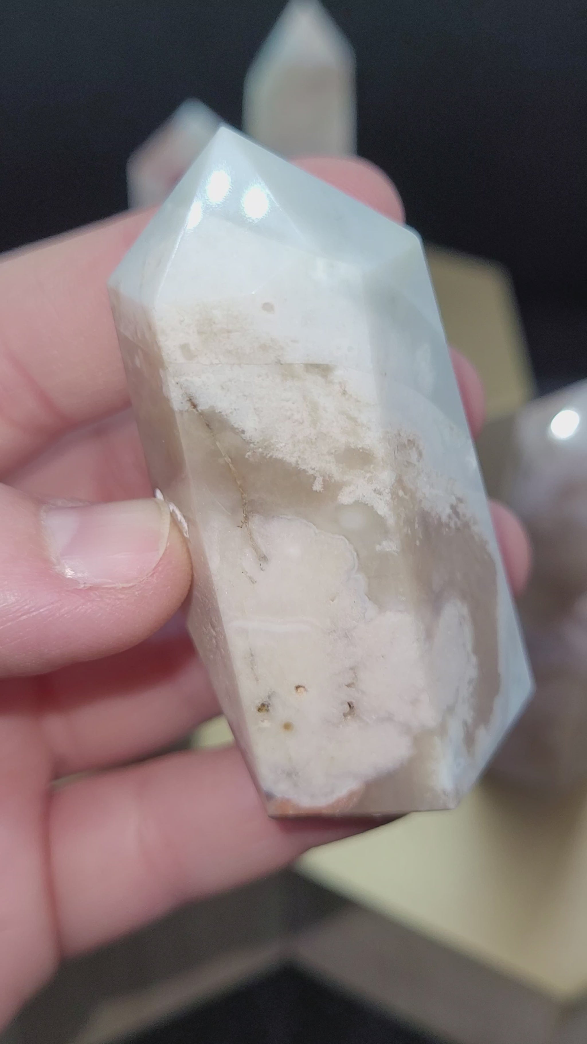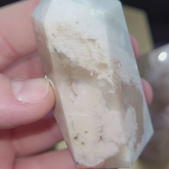 These Small Blue Flower Agate towers are charming and perfect for any space. Measuring between 2.1-3 inches tall, they are a symbol of new beginnings, growth, and transformation. As experts in their field, these agate towers are adorned with delicate flower blooms and carry properties that promote personal development. With an open heart, clarity, and renewed commitment, they can help you reach your goals and fulfill your potential. The heart and throat chakras are especially affected by these beautiful pieces.