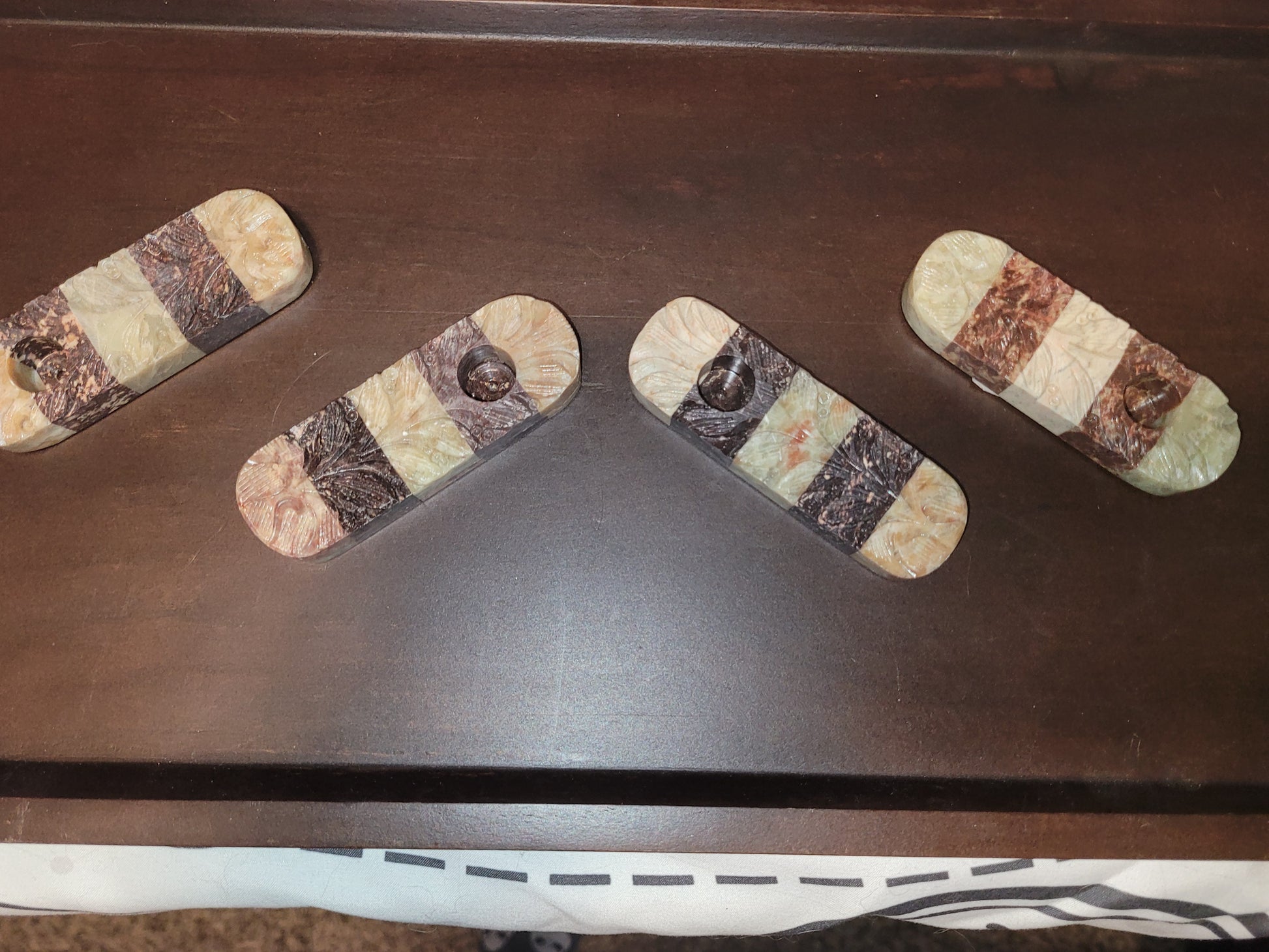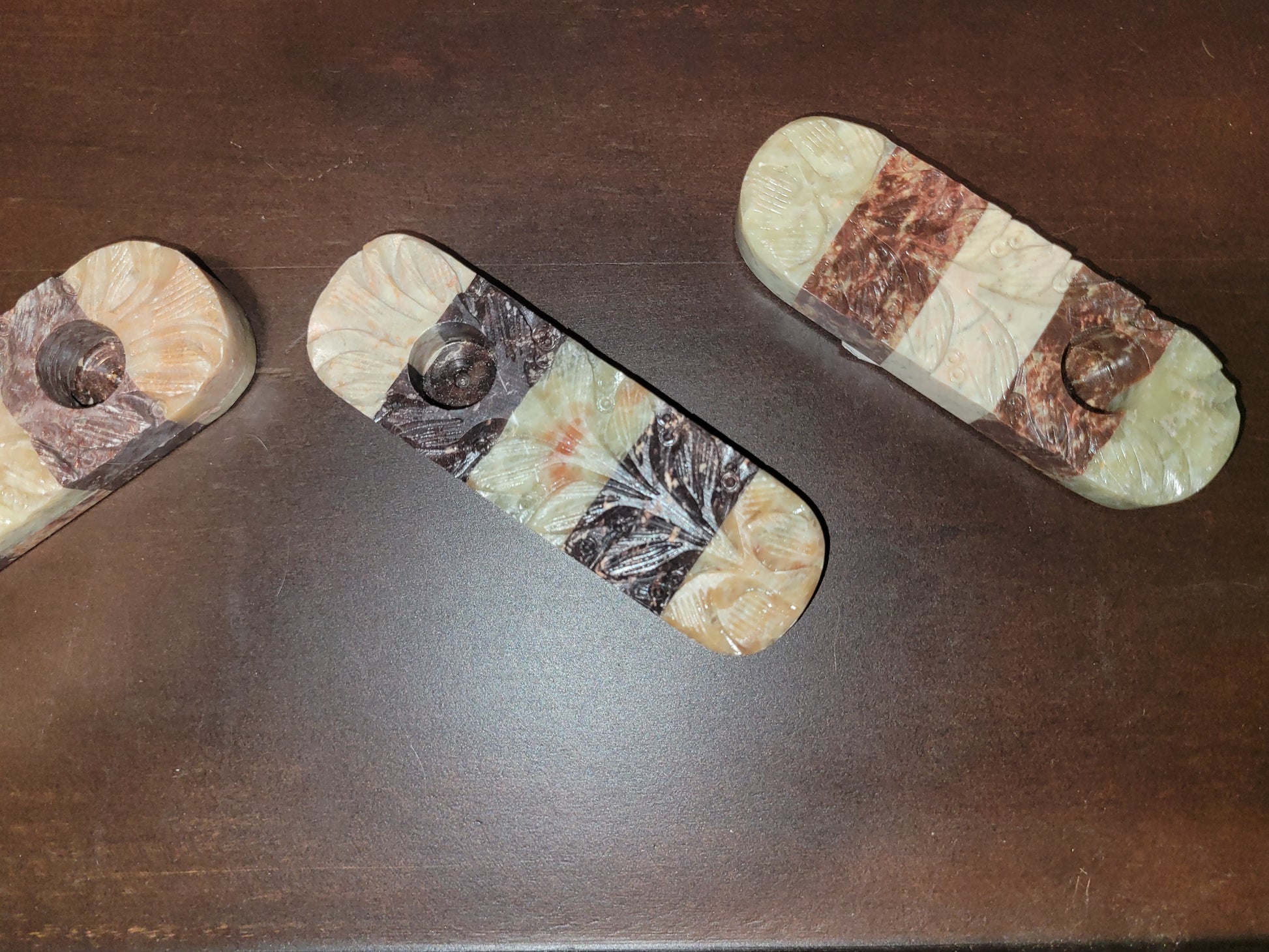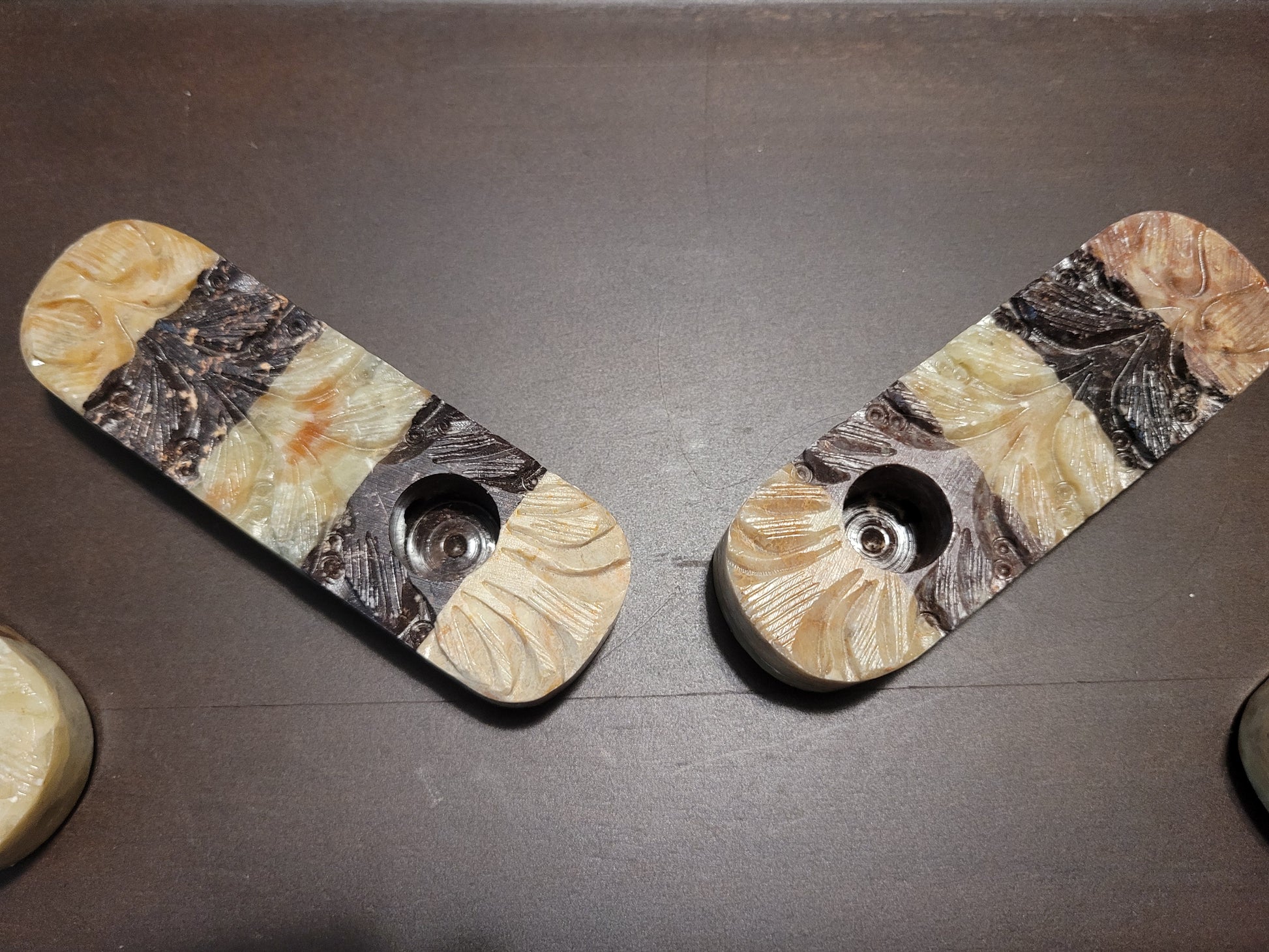 Discover four uniquely crafted soap stone pipes, each featuring detailed carvings. Designed strictly as collectible novelties, these pipes are not intended for actual smoking use.